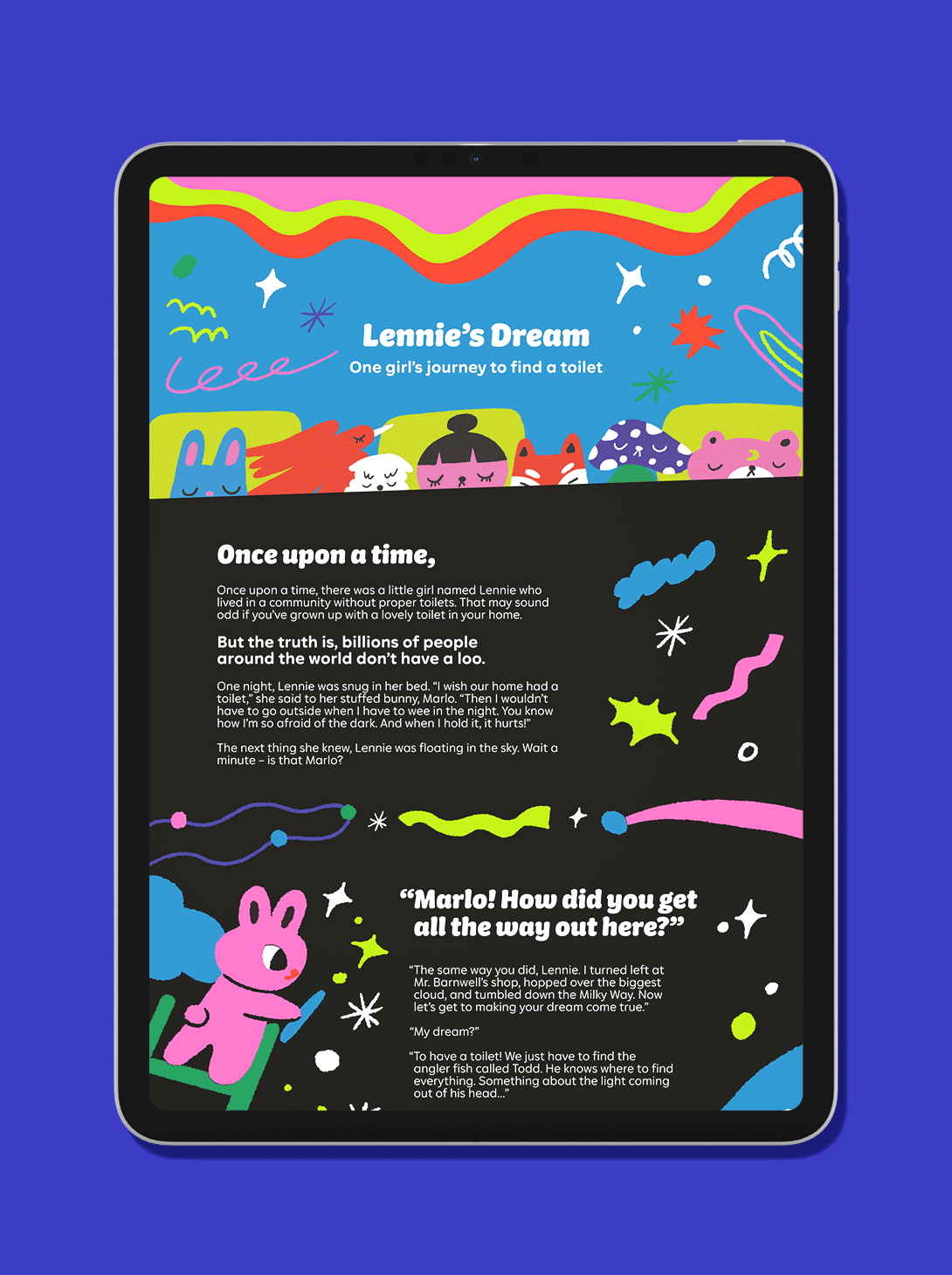 The magic of nighttime meets the magic of toilets. We created a limited edition box of glow in the dark toilet paper to illuminate the fact that billions of people around the world don’t have safe access to toilets — especially at night. As part of Who Gives A Crap’s mission to donate 50% of profits to provide access to sanitation, this edition helps us achieve the dream of safe toilets for everyone.